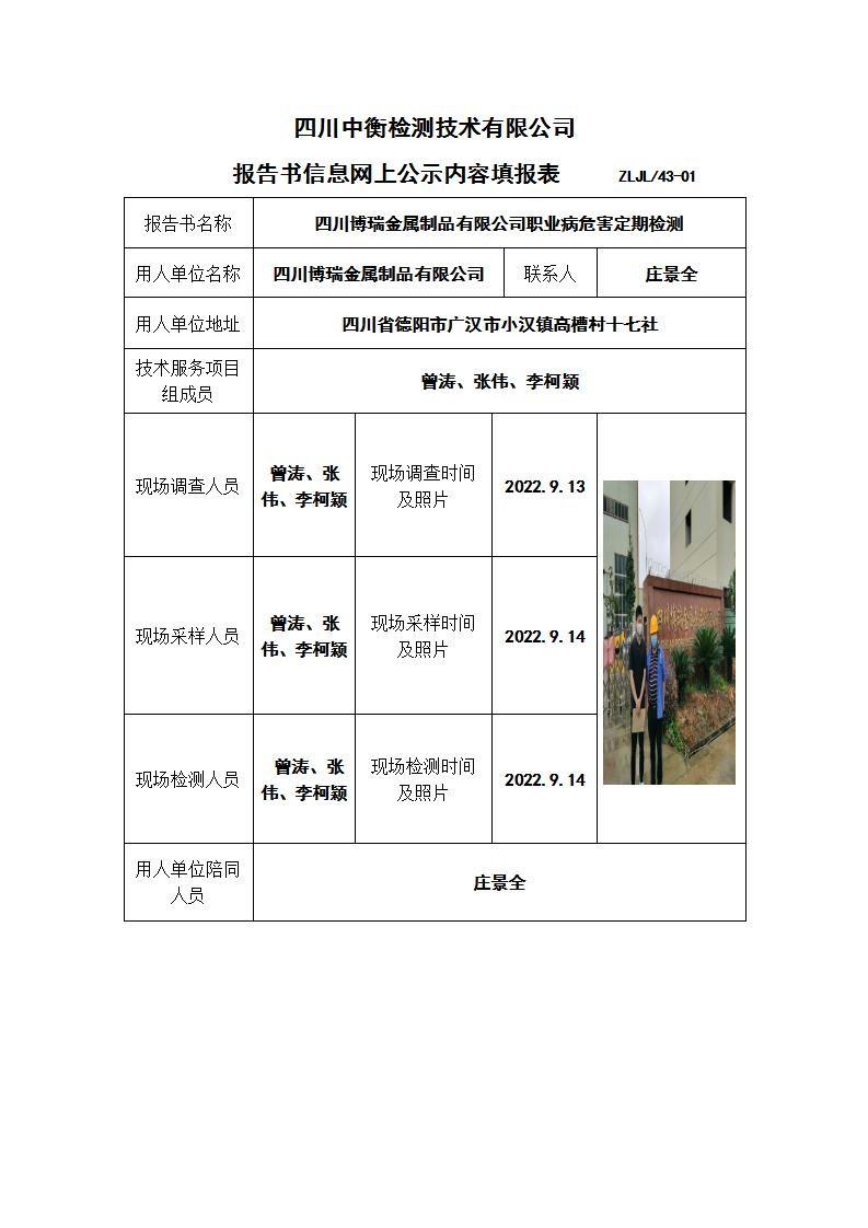 四川博瑞金属制品有限公司职业病危害定期检测