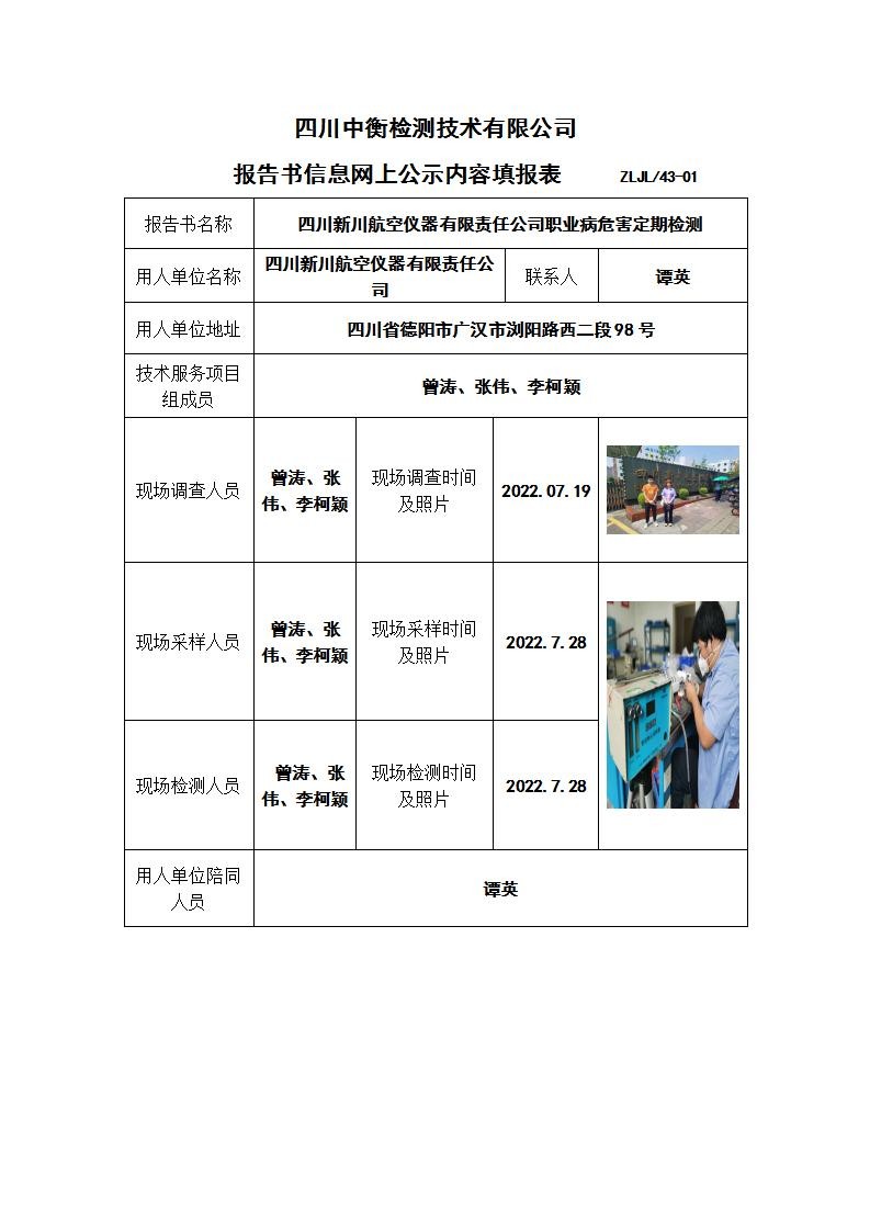四川新川航空仪器有限责任公司职业病危害定期检测