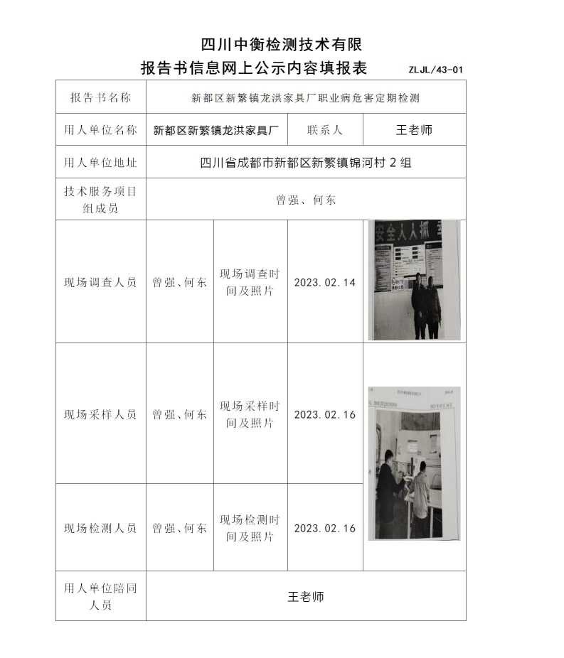 新都区新繁镇龙洪家具厂职业病危害定期检测