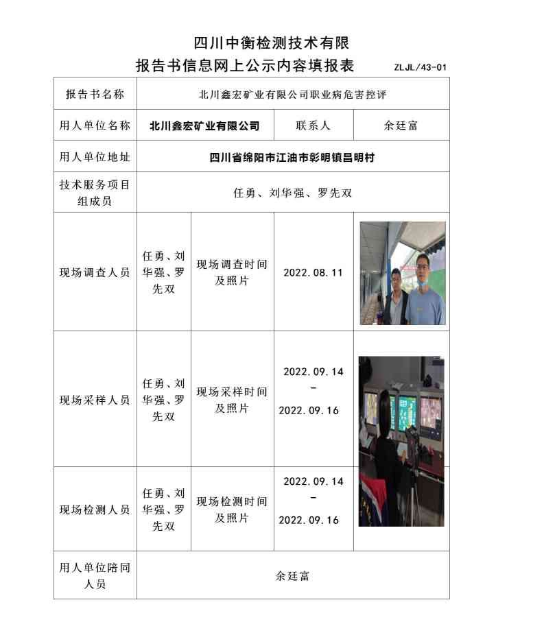 北川鑫宏矿业有限公司职业病危害控制效果评价