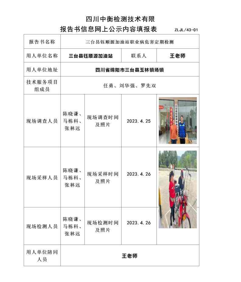 三台县钰顺源加油站职业病危害定期检测