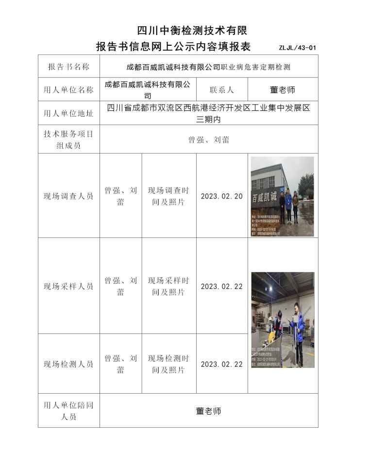 成都百威凯诚科技有限公司职业病危害定期检测
