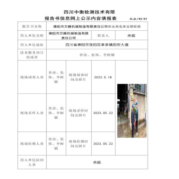 德阳市万腾机械制造有限责任公司职业病危害定期检测