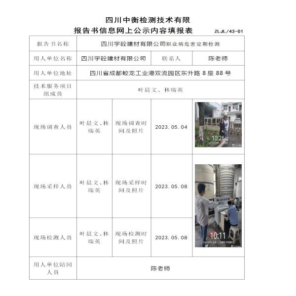 四川宇砼建材有限公司职业病危害定期检测