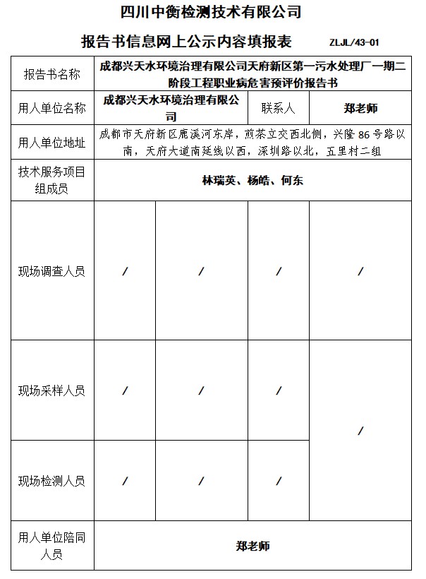 成都兴天水环境治理有限公司天府新区第一污水处理厂一期二阶段工程预评价