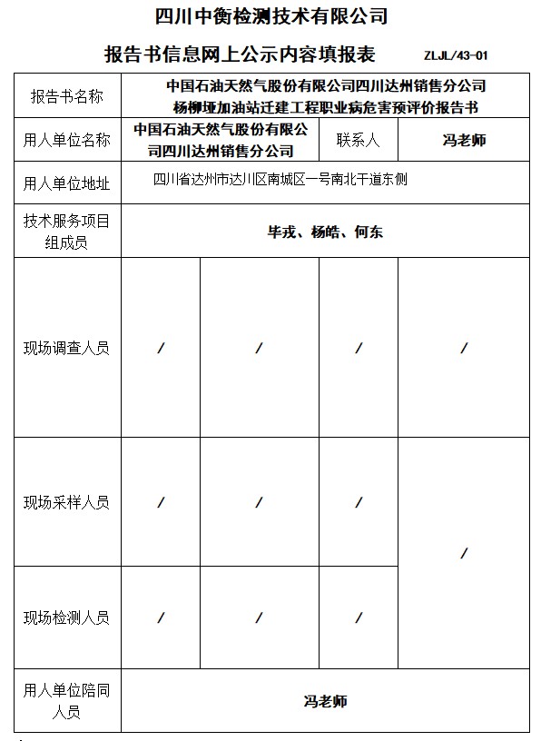 中国石油天然气股份有限公司四川达州销售分公司 杨柳垭加油站迁建工程预评价
