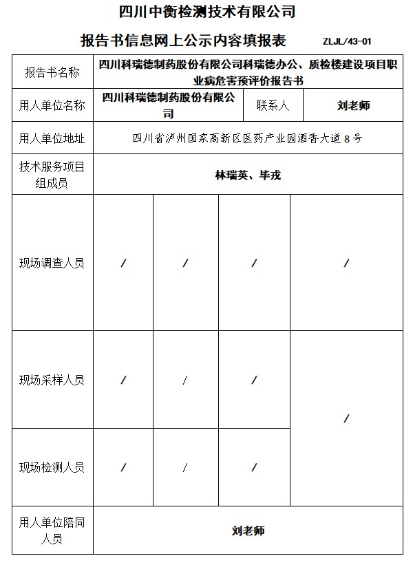 四川科瑞德制药股份有限公司科瑞德办公、质检楼建设项目预评价