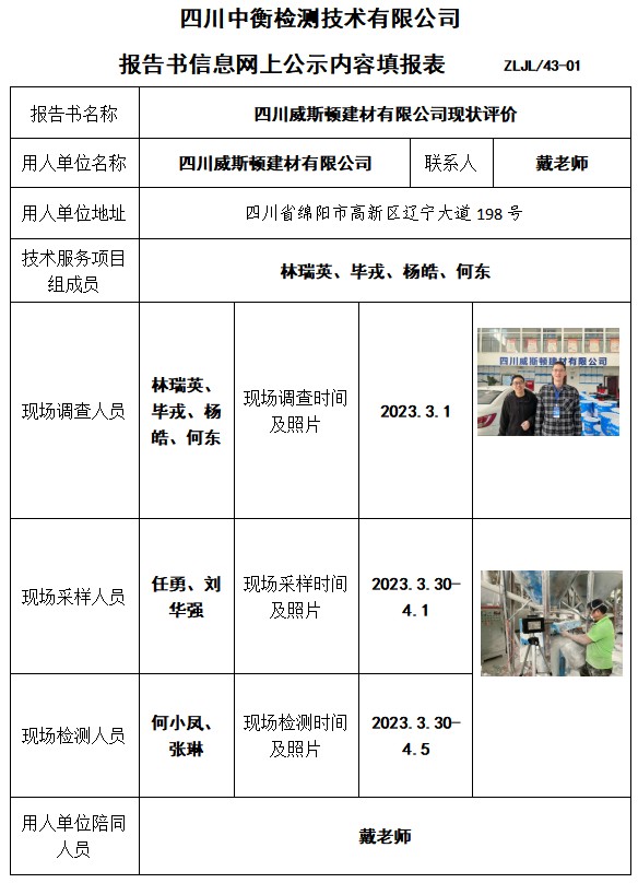 四川威斯顿建材有限公司现状评价