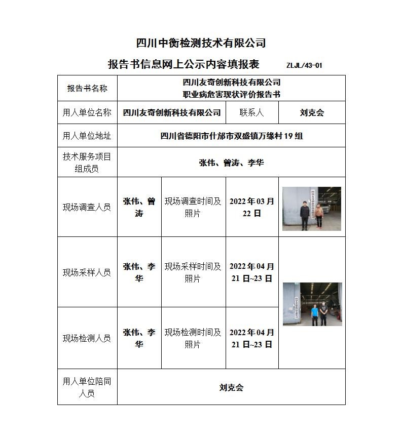 四川友奇创新科技有限公司职业病危害现状评价