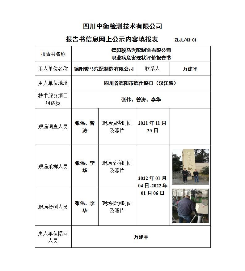 德阳骏马汽配制造有限公司职业病危害现状评价