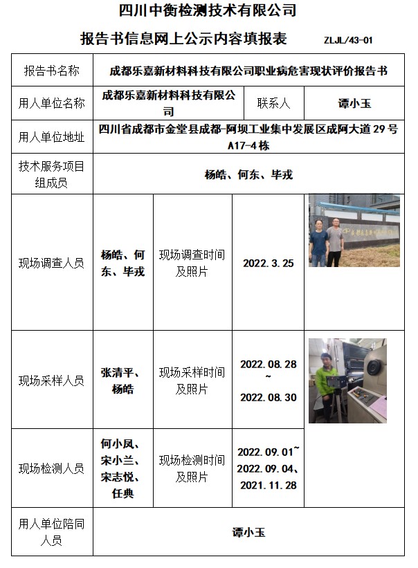 成都乐嘉新材料科技有限公司现状评价