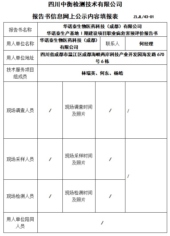 华诺泰生物医药科技(成都)有限公司预评价