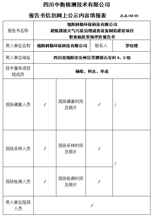 绵阳科勤环保科技有限公司 超低排放大气污染治理成套设备制造建设项目预评价