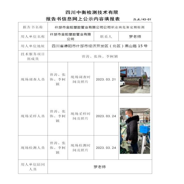 什邡市金阳塑胶管业有限公司定期检测