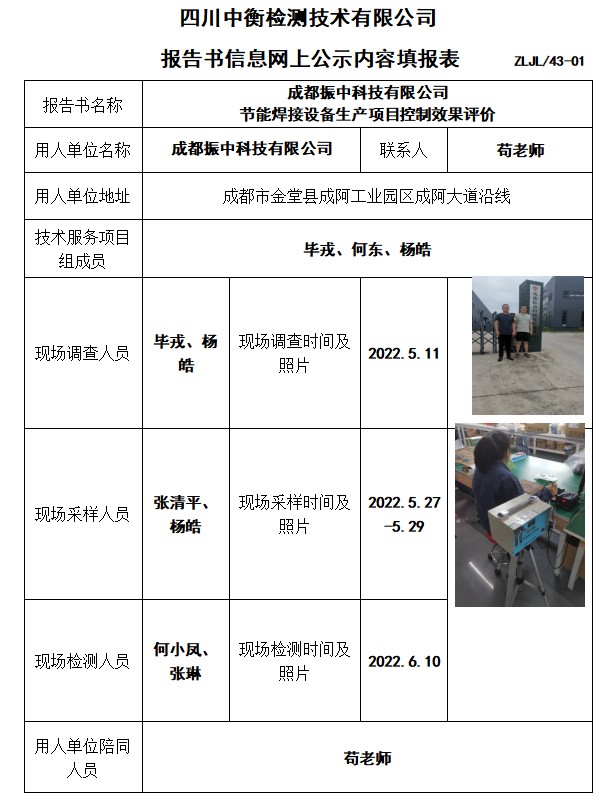 成都振中科技有限公司 节能焊接设备生产项目控制效果评价