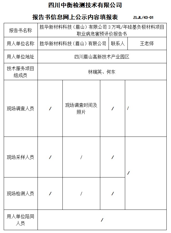 胜华新材料科技(眉山)有限公司3万吨/年硅基负极材料项目预评价