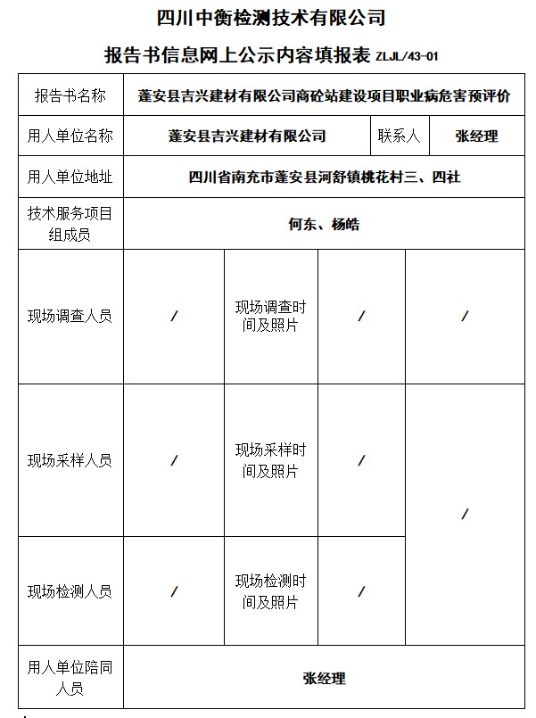 蓬安县吉兴建材有限公司商砼站建设项目预评价