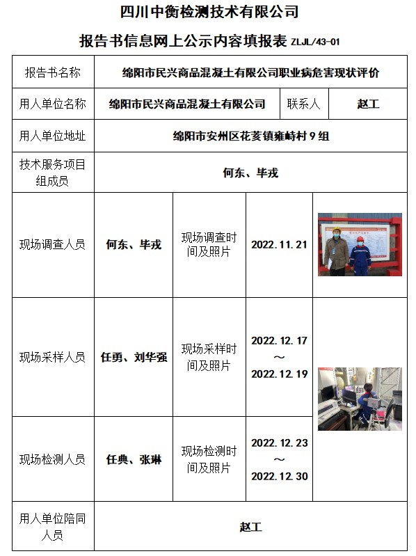 绵阳市民兴商品混凝土有限公司现状评价