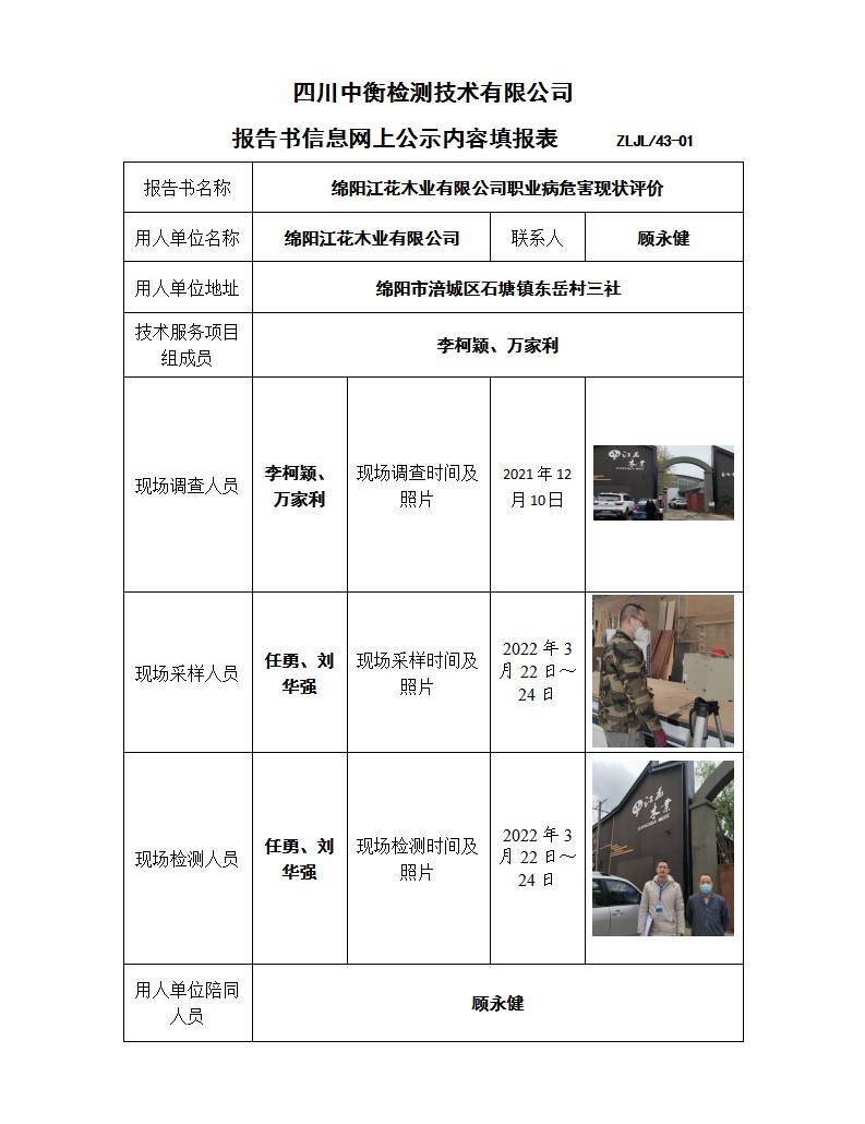 绵阳江花木业有限公司 职业病危害现状评价报告书
