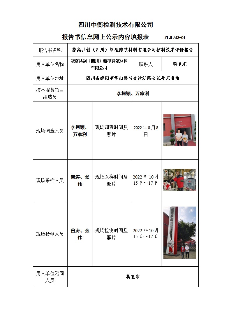 能高共创(四川)新型建筑材料有限公司 能高共创特种干粉砂浆迁建项目 职业病危害控制效果评价报告书