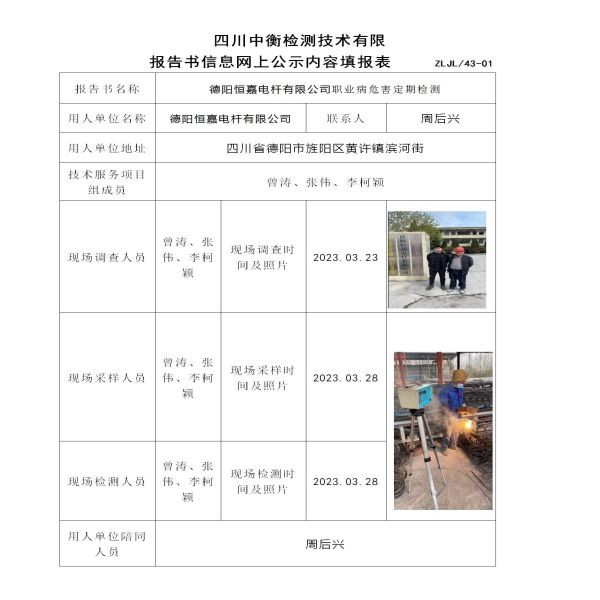 德阳恒嘉电杆有限公司定期检测