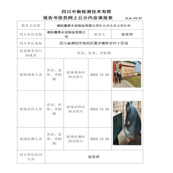 德阳嘉泰水泥制品有限公司定期检测