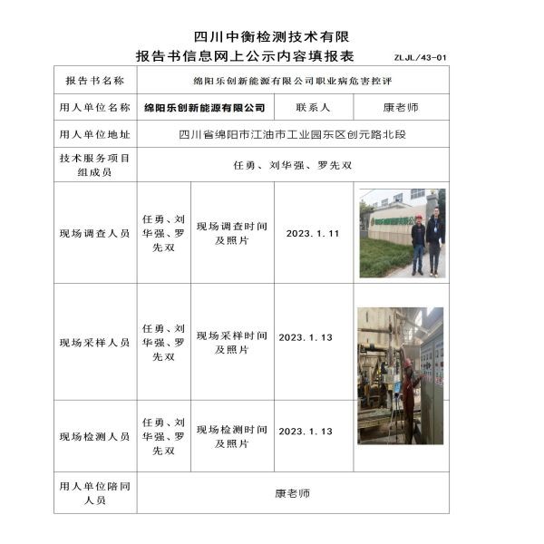 绵阳乐创新能源有限公司定期检测