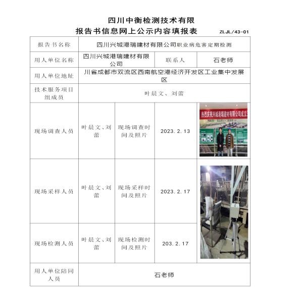 四川兴城港瑞建材有限公司定期检测