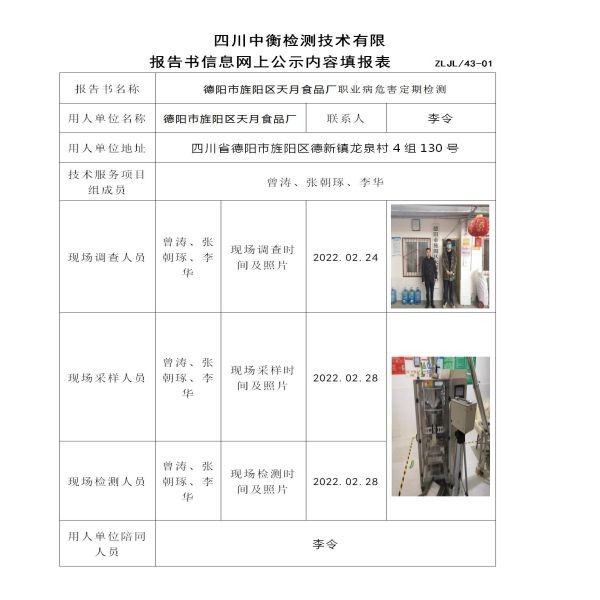 德阳市旌阳区天月食品厂定期检测