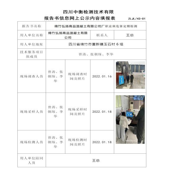 绵竹弘扬商品混凝土有限公司职业病危害定期检测