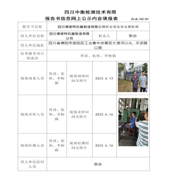 四川德诺特机器制造有限公司定期检测
