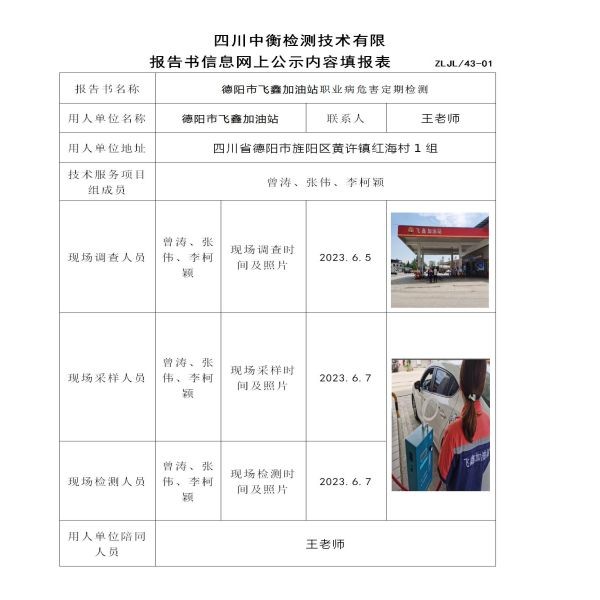 德阳市飞鑫加油站定期检测