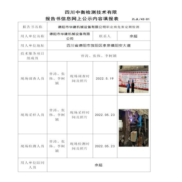 德阳市华建机械设备有限公司职业病危害定期检测
