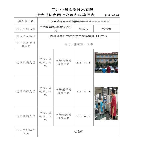 广汉鑫盛鸣源机械有限公司定期检测