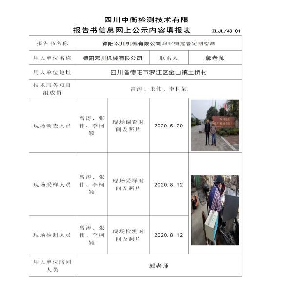 德阳宏川机械有限公司定期检测