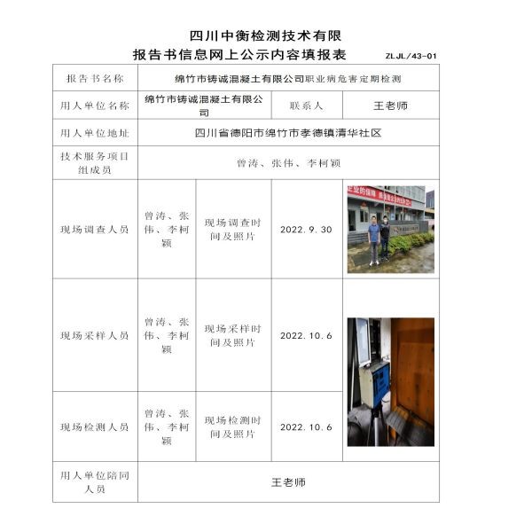 绵竹市铸诚混凝土有限公司定期检测