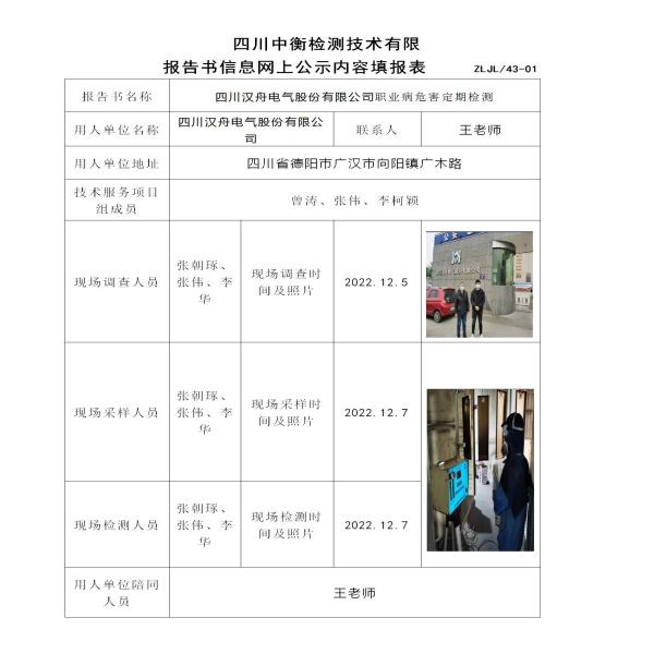 四川汉舟电气股份有限公司定期检测