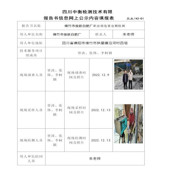 绵竹市俊跃白肥厂定期检测