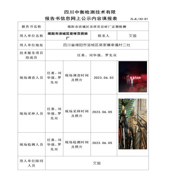 绵阳市涪城区宏祥页岩砖厂定期检测