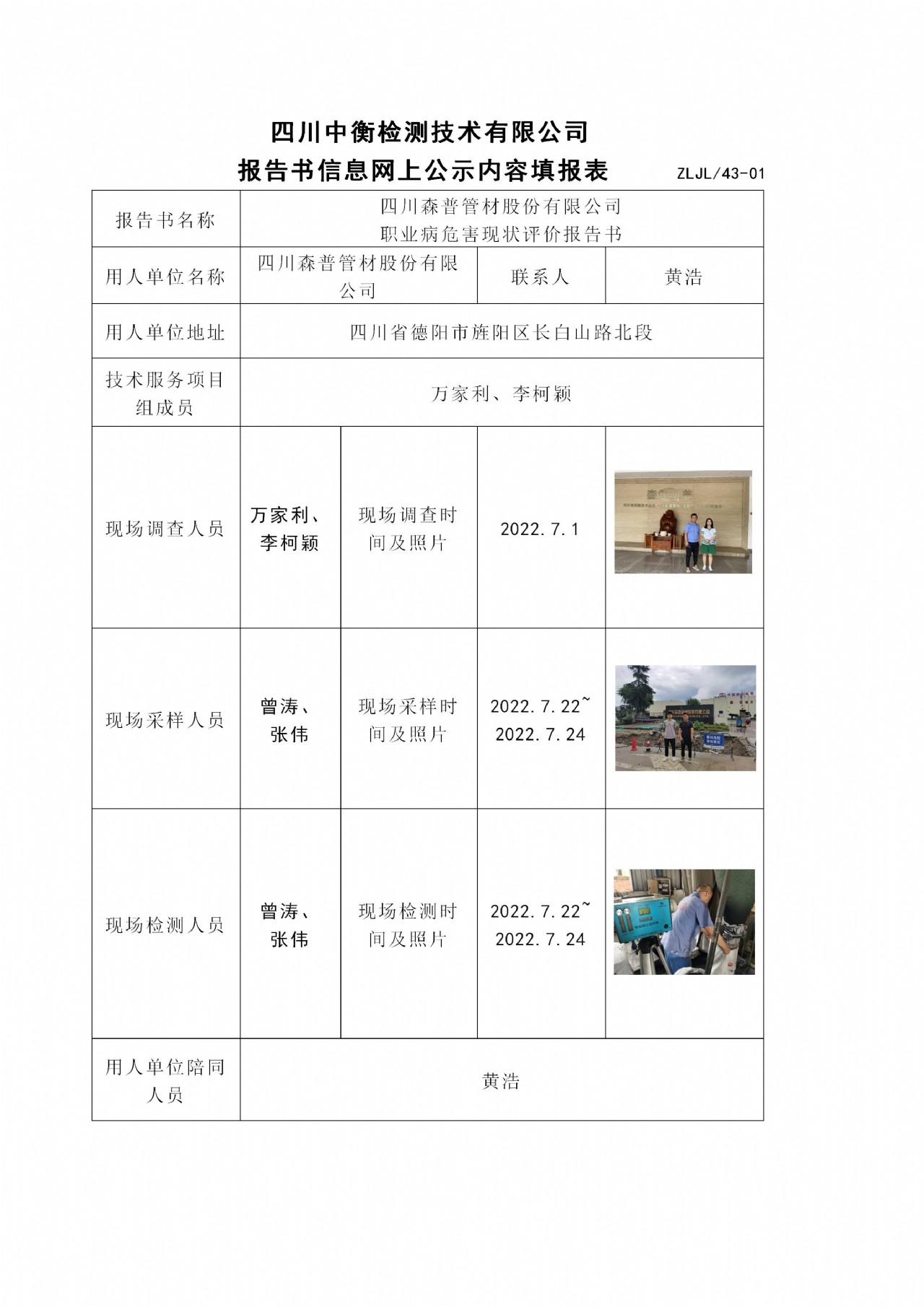四川森普管材股份有限公司 职业病危害现状评价