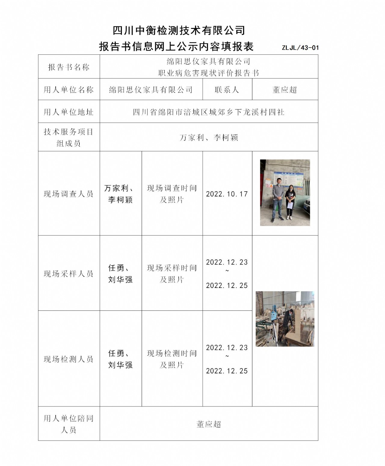 绵阳思仪家具有限公司 职业病危害现状评价