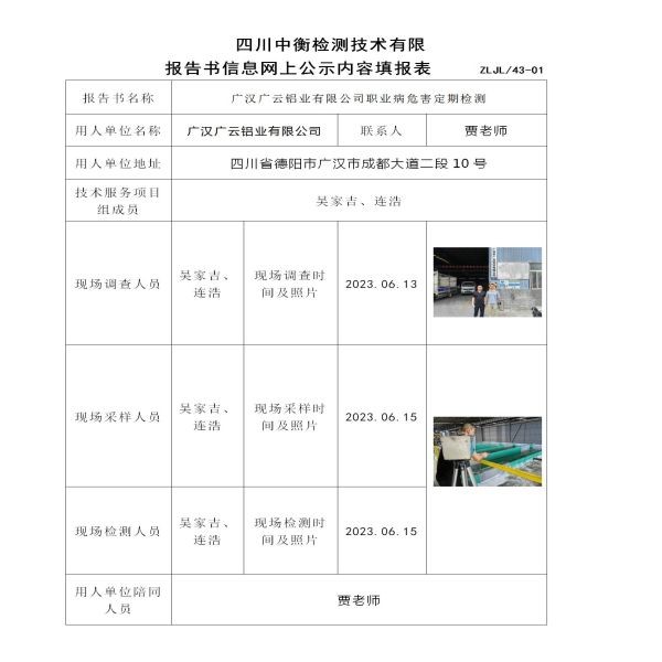广汉广云铝业有限公司定期检测