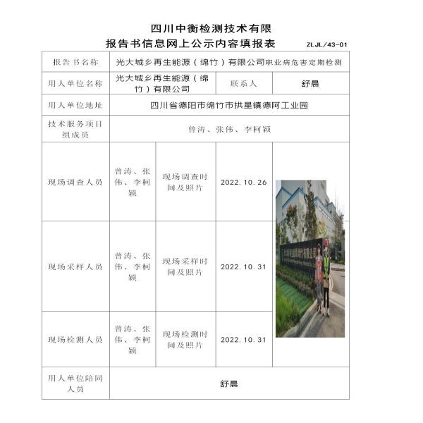 光大城乡再生能源(绵竹)有限公司定期检测