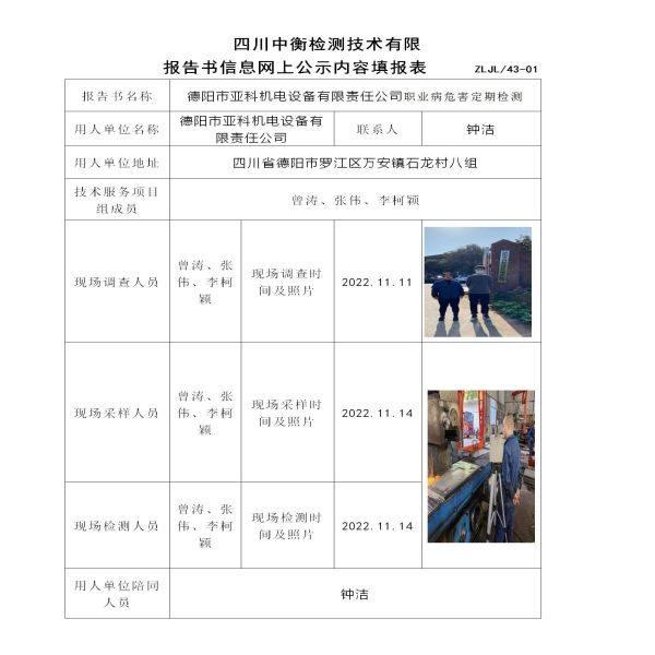 德阳市亚科机电设备有限责任公司定期检测