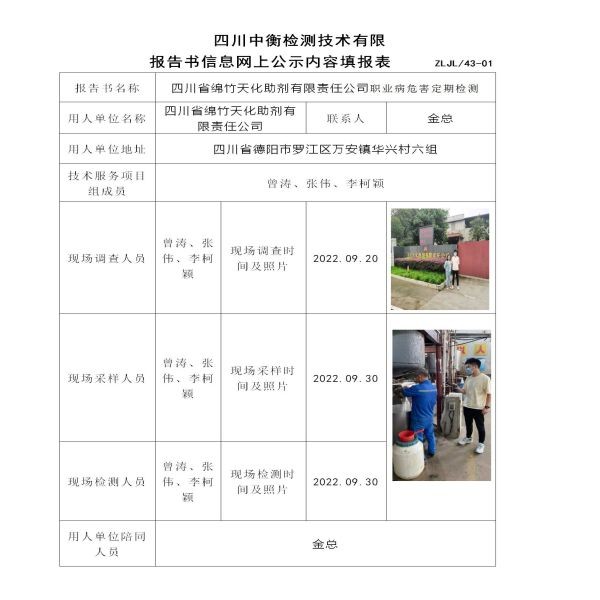 四川省绵竹天化助剂有限责任公司定期检测