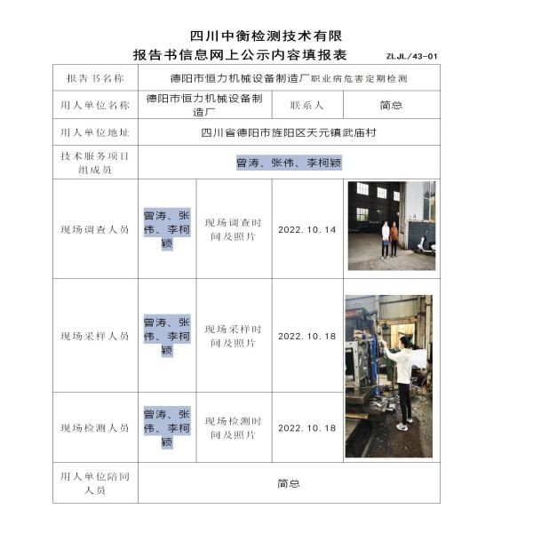 德阳市恒力机械设备制造厂定期检测