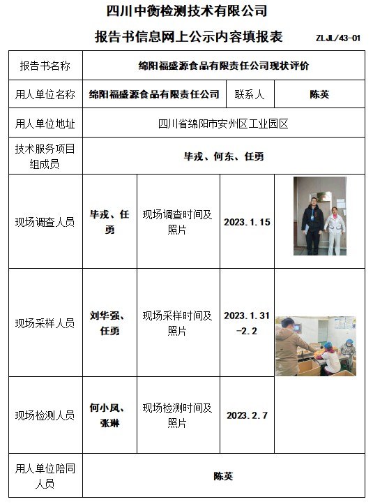 绵阳福盛源食品有限责任公司现状评价