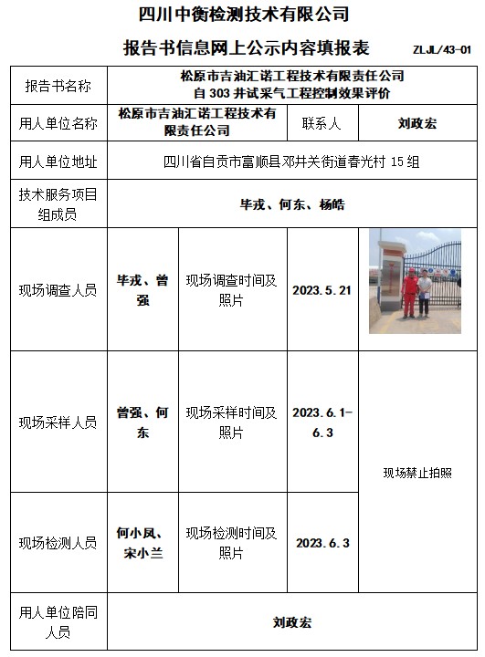 松原市吉油汇诺工程技术有限责任公司 自303井试采气工程控制效果评价