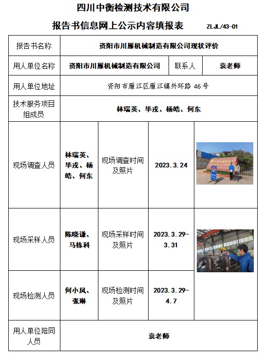 资阳市川雁机械制造有限公司现状评价