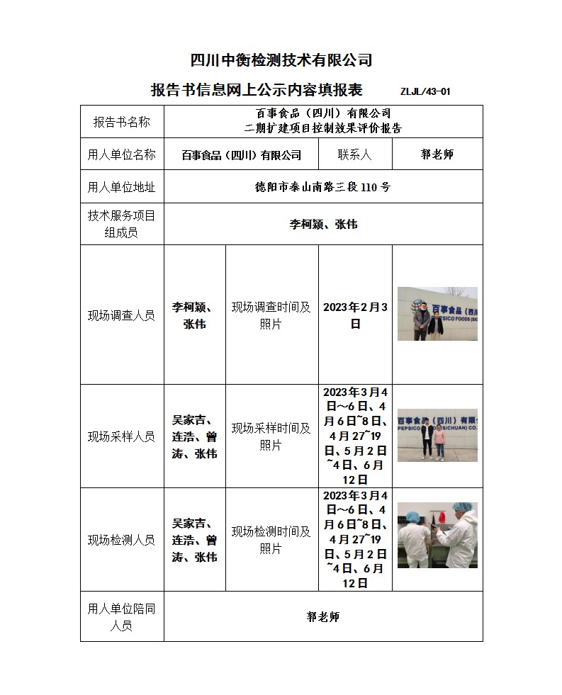 百事食品(四川)有限公司 二期扩建项目 职业病危害控制效果评价